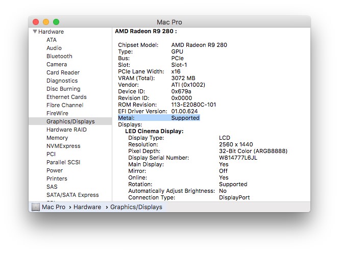 I wanted to play this new released mac game called, "Obduction." As I was looking at the specific requirement, it stated mac needed metal support. It looks like 6,1 is metal supported only from apple site. Could 5,1 be metal supported as well?