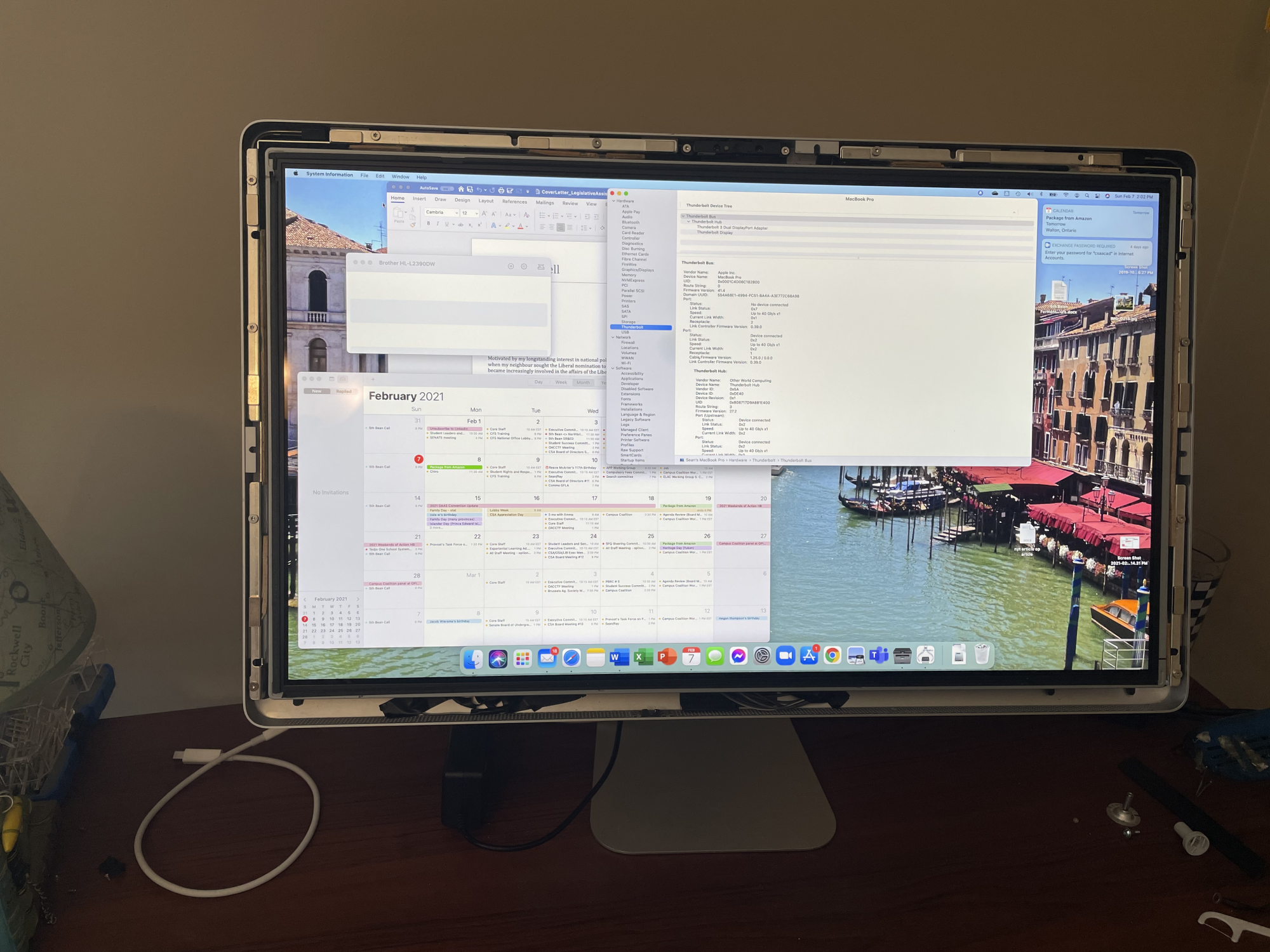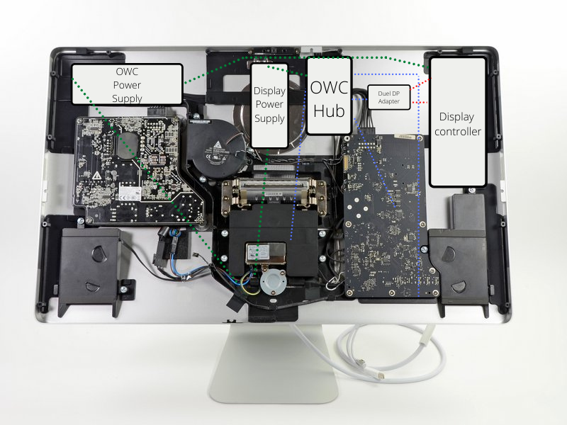 - the display panel (via an OWC dual DisplayPort to Thunderbolt 3 adapter)