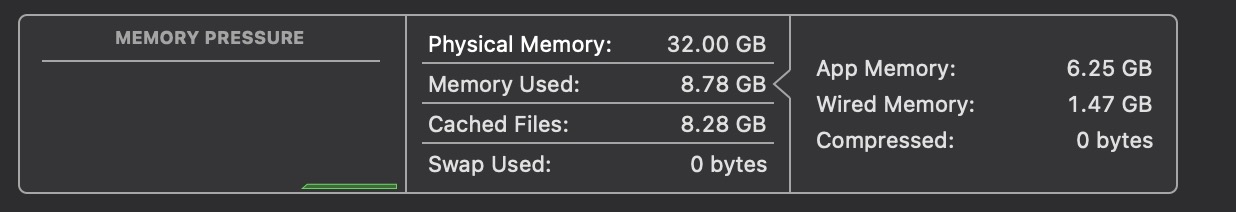 With the new MBP 64GB, of course no swap but I am very surprised how much memory is used, about 21GB for applications. AS Long as there's no swap I don't care but found it interesting. Do apps use more RAM with 64GB simply because it's available? I don't think my old 8GB RAM used that much RAM with swap with similar usage.