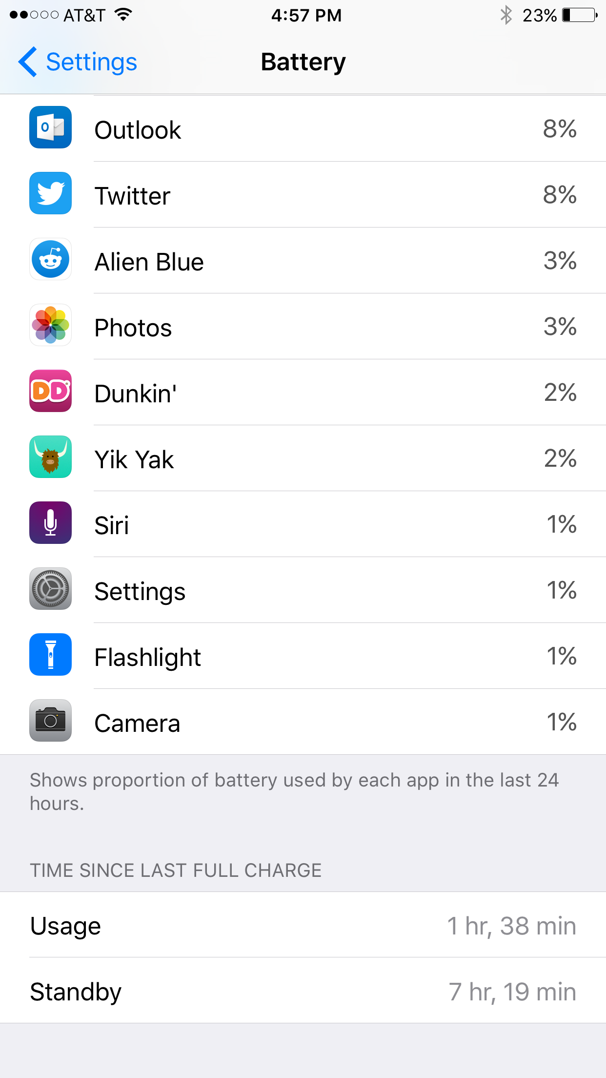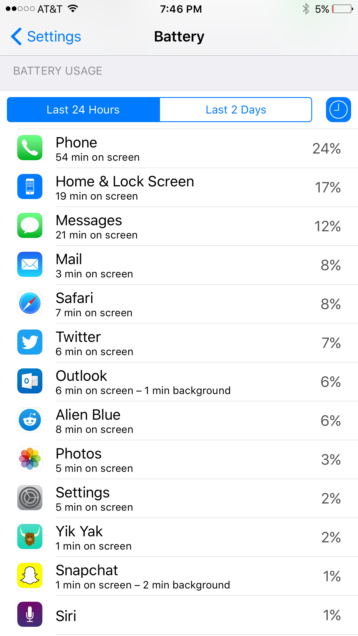 Here's the phone battery info this afternoon after a couple of phone calls and some occasional browsing:Limited Location Services predominantly to "never" or "while using" on apps that need it