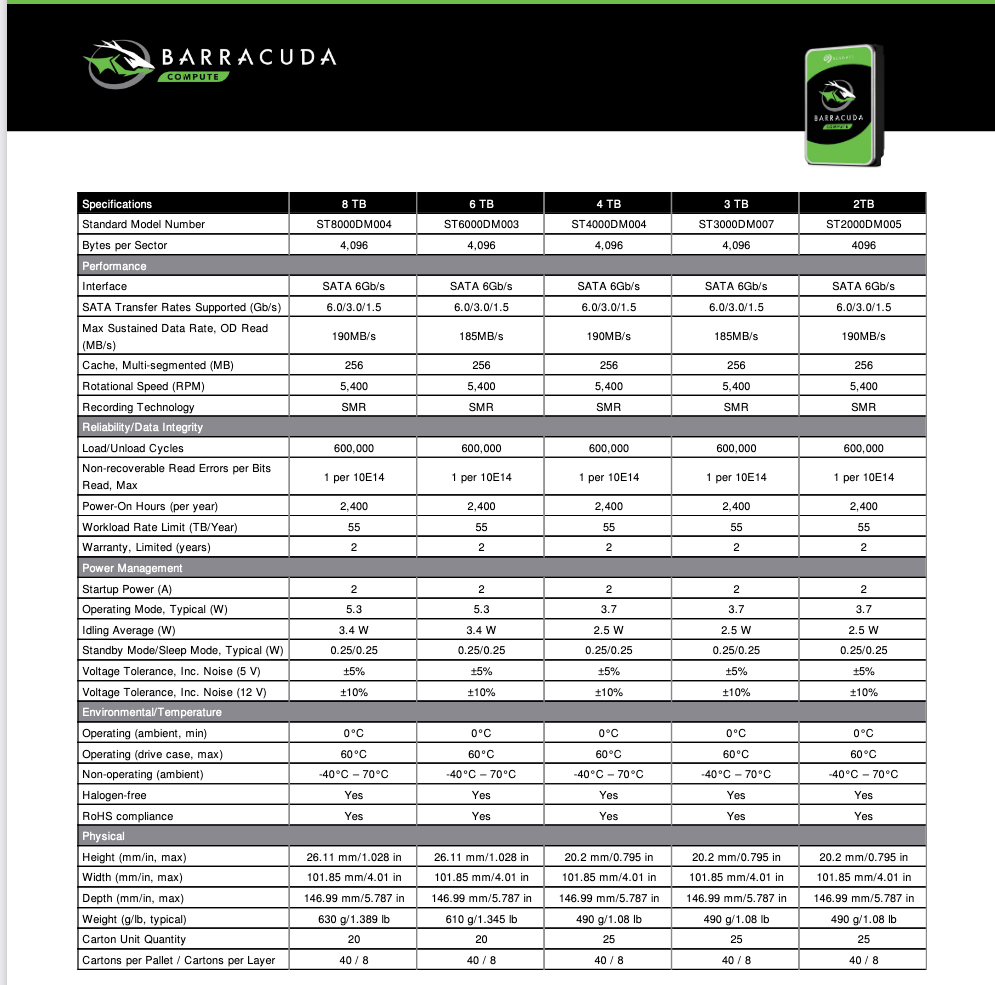 I'd like to check compatability of 6Tb Seagate Barracuda Compute 3.5" Internal HDD 5400RPM drives with Mac Pro 5,1 on Mojave 10.14.6. These are standard edition NOT Pro edition.
