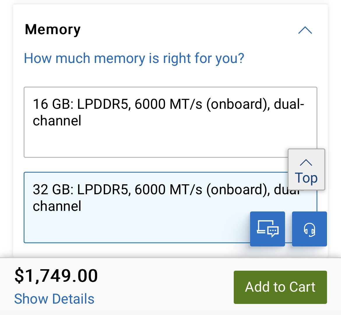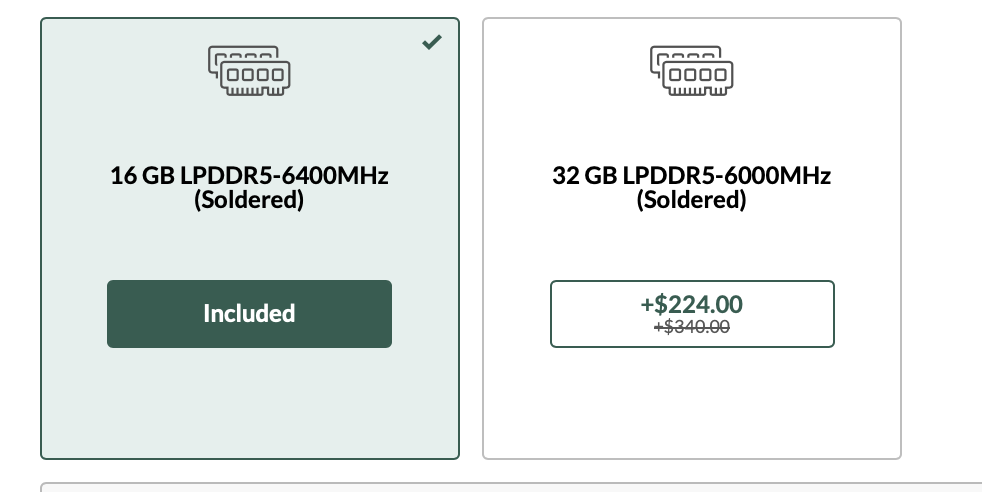 This is the Dell XPS 13 Plus, and Dell charges $250 to jump from 16GB to 32GB.OK, fair enough. Let's start over. Here I've made the comparison as clear as I can. Plus, for every single one of these, I've provided screenshots from the mfr's website confirming the prices in the table. I showed all of these in my previous posts to you, except for the last two, which are thus included below.
