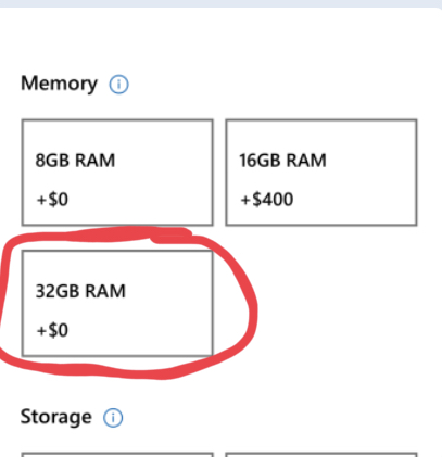 I’m going to contest that a little bit. Sure, Apple’s RAM prices may be higher than some PC manufacturers, but I wouldn’t say all. Take as a case in point the Microsoft Surface Pro 9 with the i5. Looking at its configurations, they charge $400 to upgrade from 8GB RAM to 16GB RAM. That’s double what Apple charges. And in case you’re wondering, no, they don’t upgrade the CPU as well or anything, that is just for the RAM, you can see for yourself.