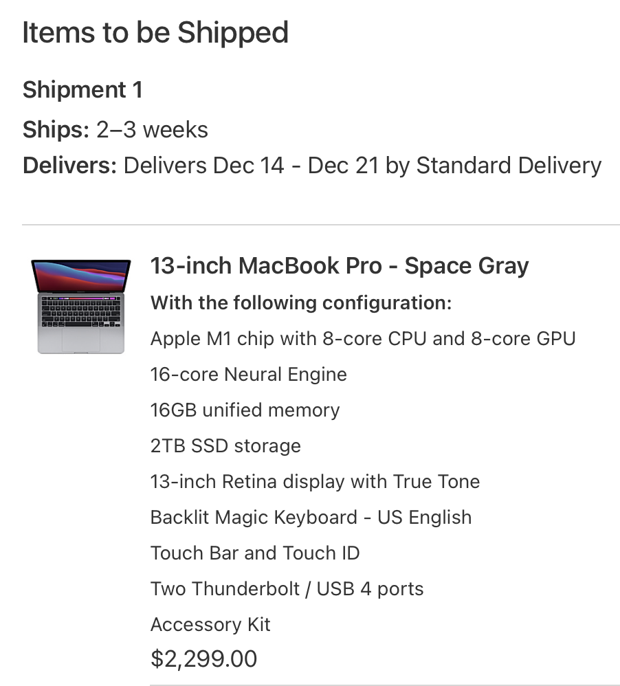 While COVID definitely plays a role, I think the bigger issue has been keeping up with demand due to an abnormally large interest in Apple products from lockdowns/WFH.SMH. It's so bizarre how people don't seem to understand that COVID is the reason for slow product shipments. It hasn't gone away. It's affecting EVERY retailer and corporation who ships goods, especially when production is done in China or oversees. I just checked for a base model MBA. No upgrades. It's 2-3 week wait. Understandable. Just because it's Apple doesn't mean that Apple has special powers beyond COVID. Just be patient and wait it out like everyone else has to.
