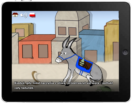 It is an illustrated story for children, containing 16 colorful illustrations, English and Polish text and voice over and possibility of switching language at any time. Pages are changed with finger swipe and their animation gives a feel of a real book.