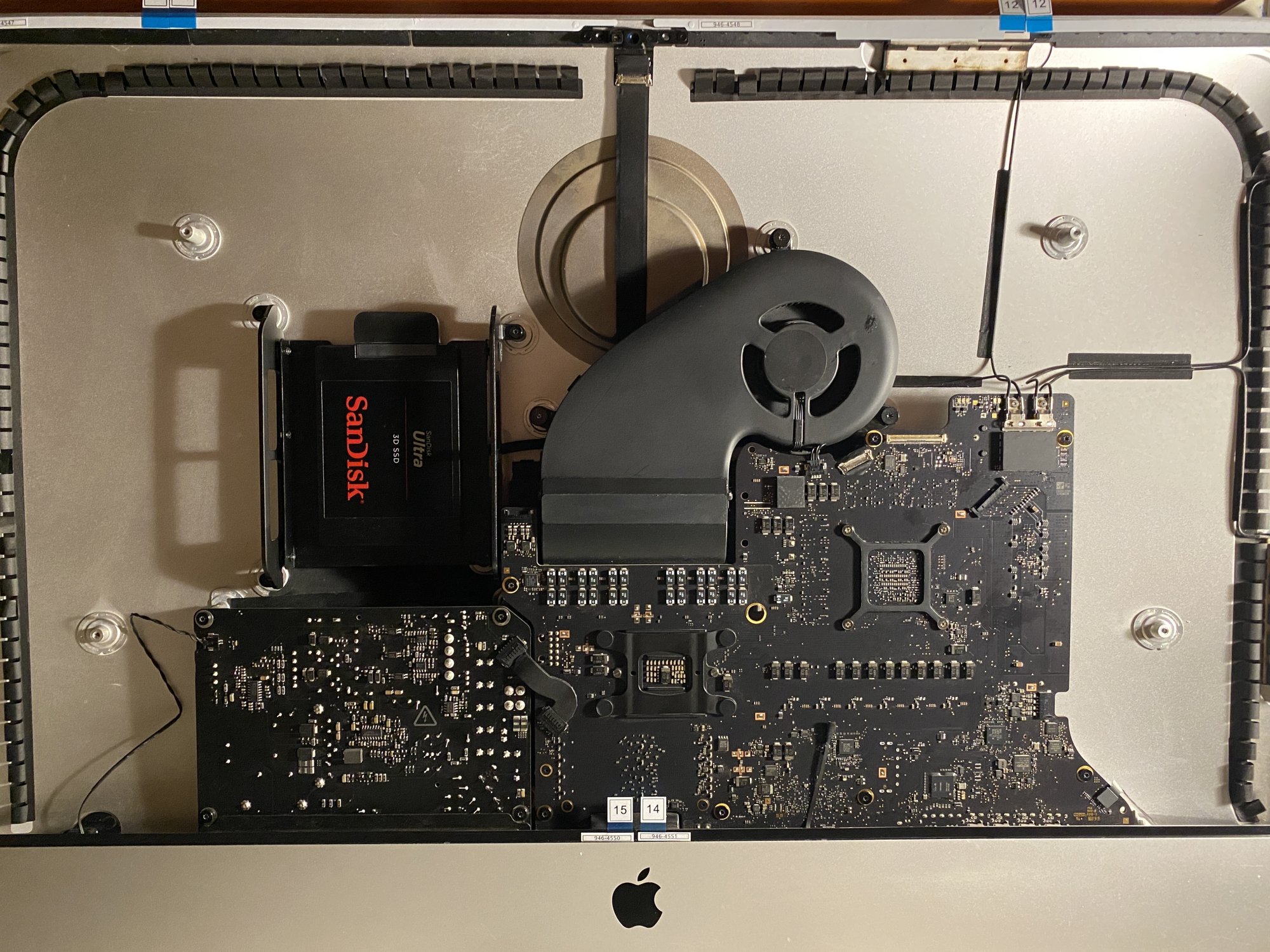 4. Experience has taught me to respect static electricity and I now always wear surgical gloves. Wrist cables are something of an obstacle. I vividly remember opening a 2007 imac to replace HDD with SSD. On re-assemby there was no power.