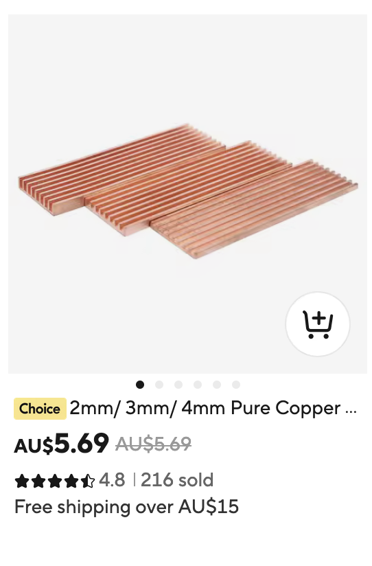 Excellent reasoning on using copper instead of the usual aluminium heat sinks, as copper has roughly twice the conductivity coefficient than (most) aluminium alloys. What would interest me would be the actual reduction in temperature with/without copper heatsink with no interference by Macs Fan Control etc., because I am not entirely convinced about your statement that airflow is more important than heatsink surface: This is because the airflow reduces temperature because it flows over the surfaces to be cooled, the higher the touched surface the higher hence the heat removal. And here the fins serve to enlarge the available surface area such that the net effect between a flat copper heatsink vs. the commercial aluminium heatsink with fins could be actually identical.