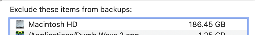 When time comes to make a backup, simply go back into these Options and remove 'Macintosh HD' from the exclusion list to proceed with backing up as normal!