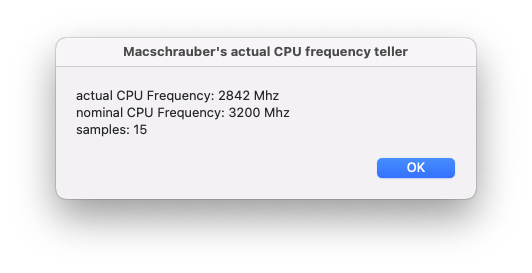 "samples: " & (samples as string) with title "Macschrauber's turbo CPU frequency teller" buttons {"OK"} default button "OK"