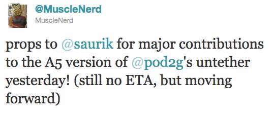 Just a couple of twitter captures on updates in case anyone is interested. At least we know it's still progressing. Give a big shout out to Saurik & planetbeing!!