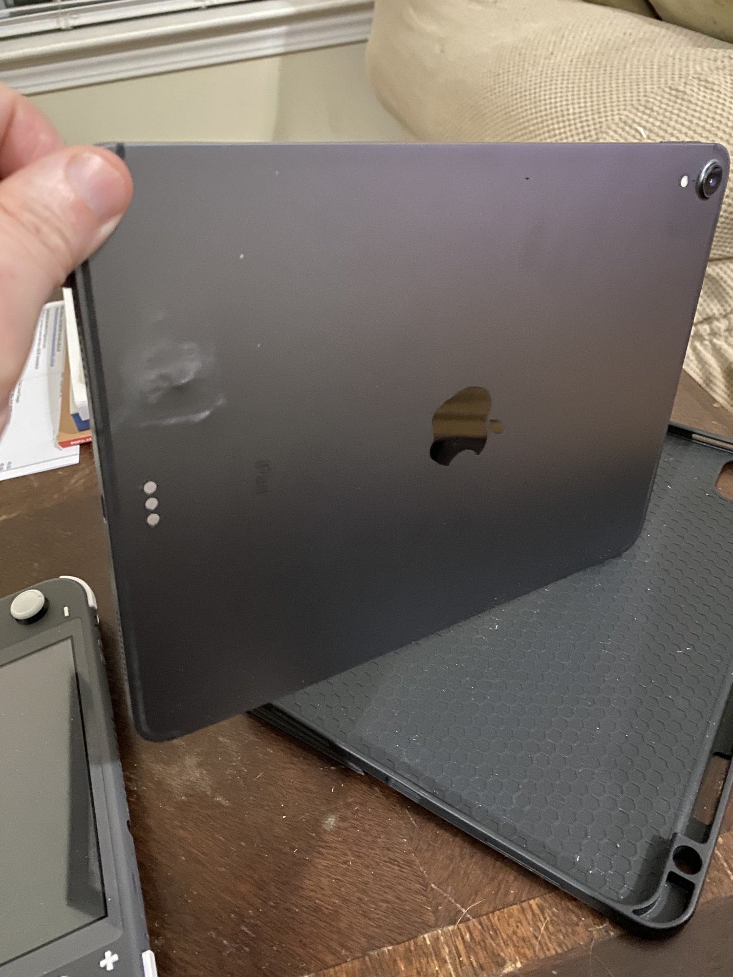 My 2019 iPad Pro was on my cars battery while I was trying to figure out what was wrong with my car. I was on a FaceTime call with a friend who is a mechanic. I had a pry bar and flashlight in my hand. I lost my balance somehow and the 3 foot pry bar ended hitting my iPad and it went flying. I still don't know exactly what went wrong. It was in a case but well I will let the pictures do the talking.