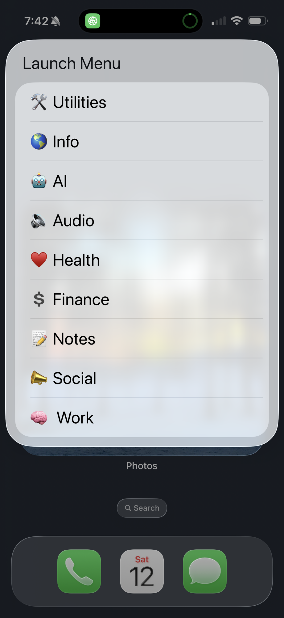 Use the shortcuts app to create a list of "choose from menu" actions. Each option links to a corresponding action like launching an app, triggering an action or opening a file.How did you do that?