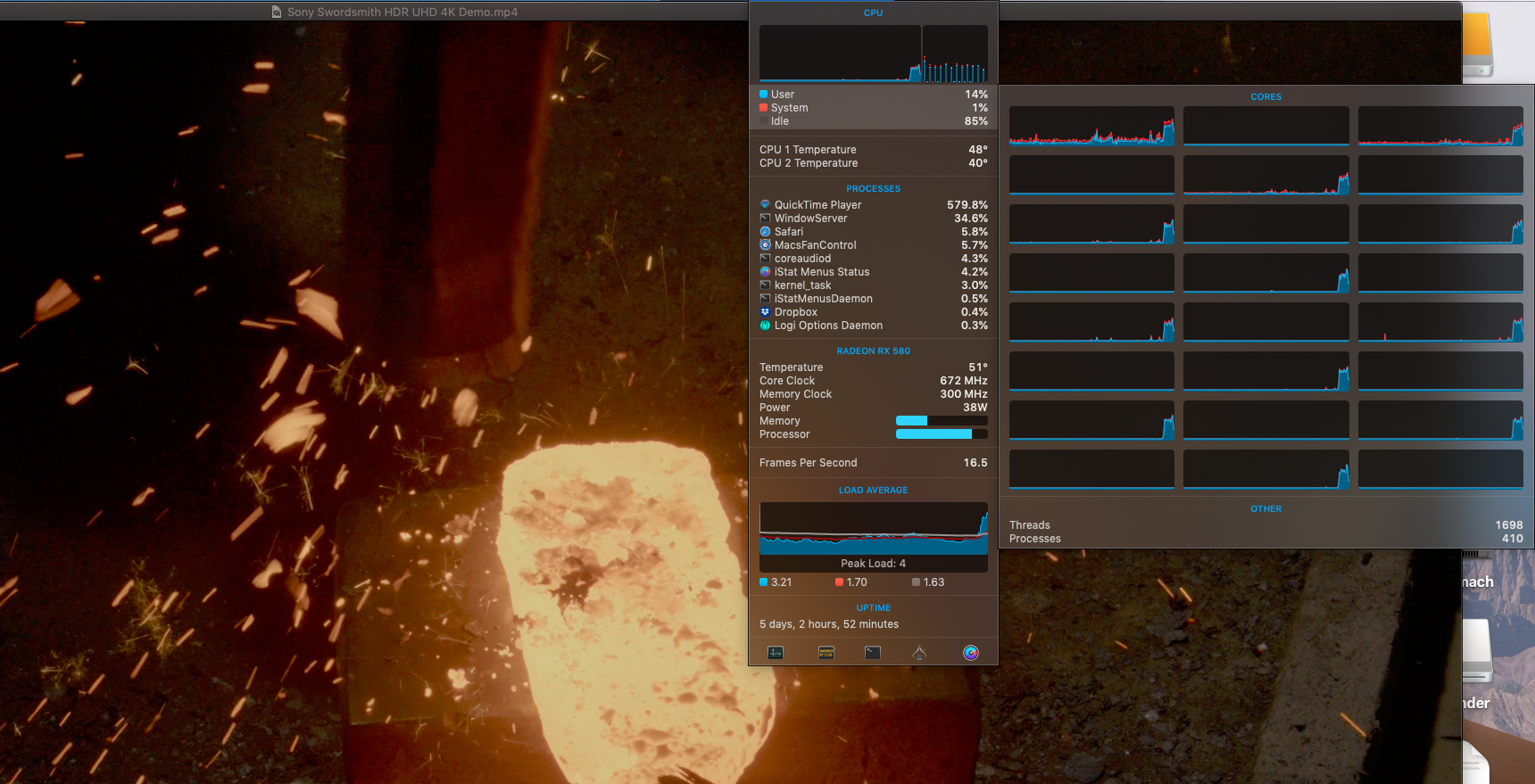 If i test the jellyfish 10bit h265 all the video play smooth in VLC but the CPU went 500% every time!?