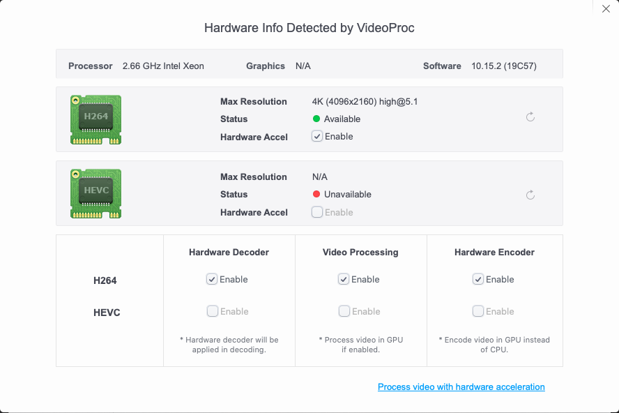 I've installed dosdude's 10.5.2 and although I haven't modified AppleGVA.framework, H264 HWAccel seems activated, at least in VideoProc. H264 conversion in other apps, like Compressor, seems to work fine although HWAccel is minimal, which is expected anyway. It is only in hanbrake that any attempt to convert to H264 fails.I am not sure, but H264 HWAccel should be OK, Apple only removed the HEVC HWAccel for Polaris in 10.15.2