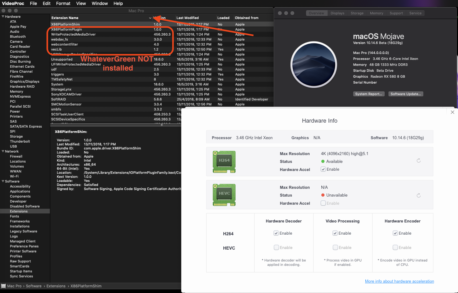 I won't go into too details step by step at this moment. Because this is a more danger approach IMO. And I couldn't find any real world difference then using board-id injection. HEVC encoding still can't be activated. I am not sure if this can give Polaris GPU more stable hwaccel support. I only confirm this can work 10min ago. I keep running FCPX and Compressor in the last 10min. No crash, no freeze. But I can't say this is a better way to RX580 users yet. Simply too little data to confirm anything.