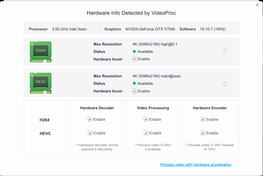 It is not only Videoproc which is fooled. Activity monitor is too.The reason is because VideoProc NOT aways shows the GPU that provide HWAccel in that Hardware Info page