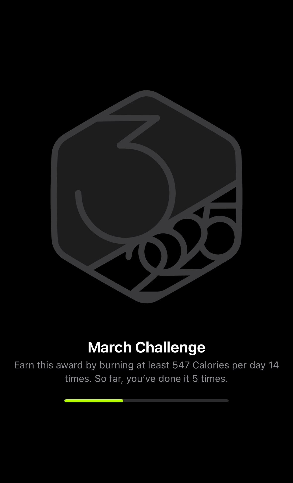 Y @carapau tienen andar o correr por 9 millas de distancia por 2 semanas. ¿Qué es tu reto de movimiento en los anillos de actividad?Sí, por supuesto. El reto dice andar o correr.