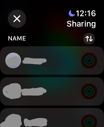 - AW - (Up until today) No friends listed under sharing section of Activity app