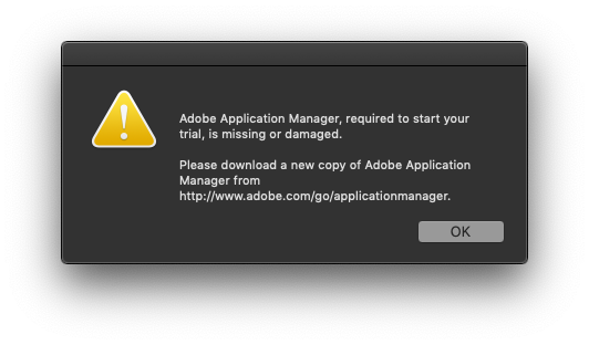 Adobe Application Manager required is missing or damaged. Download a new copy