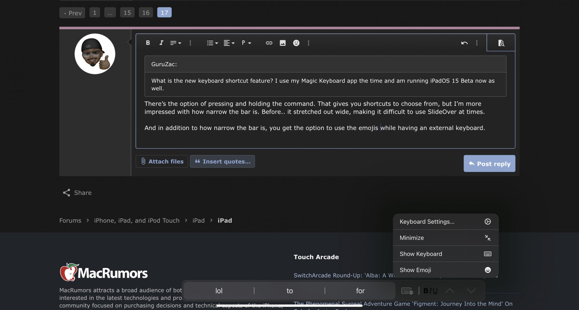 i mean there's a bajillion ways to solve for this. They could follow Adobe's example and make a more streamlined version of each for touch and work to add features back in. Akin to what they did with photos when they deprecated iPhotos or what they did with their productivity suite (word, powerpoint, excel forgot their names for it).There are tons of tiny fiddly bits in FCP that will need reworking for touch. While they COULD release it on iPad, I don’t think they will without it being touch centric.
