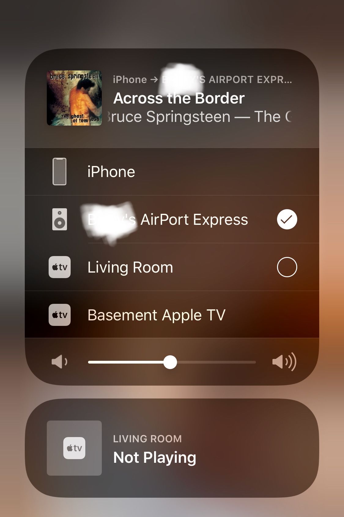 Then I have my old Airport Express set up with some speakers plugged in in the dining room.