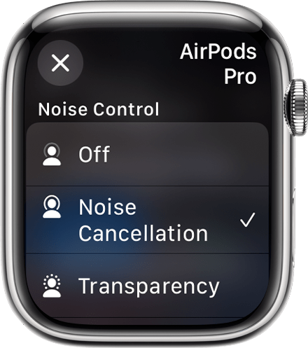 In WatchOS 10, there was an "Airplay" style interface like in iOS where you could control the noise cancellation setting of your Airpods. It looked like this: