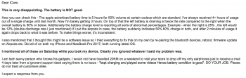 I have never met a person more unprofessional, ignorant & rude than the woman (the technician) in my life so far. [Her name is Kalpana. If anybody is reading this from India and you live in Hyderabad, be aware of the Dilsukhnagar iCare care.] In all their bulls**t mails with pre-writen text they repeatedly mentioned to replicate the issue at the centre itself in front of them. When I asked to do the same, they told me to use some other device because something might be wrong with my phone. They disregarded me saying that, I had already tried with another iPhone, a MacBook Pro and an iMac, so I didn't argue further. Another "technician" gave his phone and I sat there for 35 minutes taking reading in my notepad in 5-7 minutes interval; the technician himself dictated the battery percentage. Turns out the buds discharged 30% in 35 minutes. Honestly I have never seen the battery drop that fast either; it was bad; but not quite that bad. So... I tell them to check it cause it's been a while.