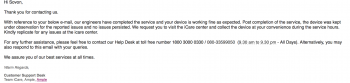 I tried calling this time, instead of mail. Turns out, there is no way to connect to the iCare office where my device at. The call goes to a centralised call centre located somewhere else in the country. Regardless, describing the situation to an agent & asking whether she can arrange a call from the technician, she tells me that I will get a call in an hour. 2 hours later I call them again saying that I didn't receive any call. After describing situation again, an agent tells me I'll definitely get a call by end of day. Didn't get any call that day.