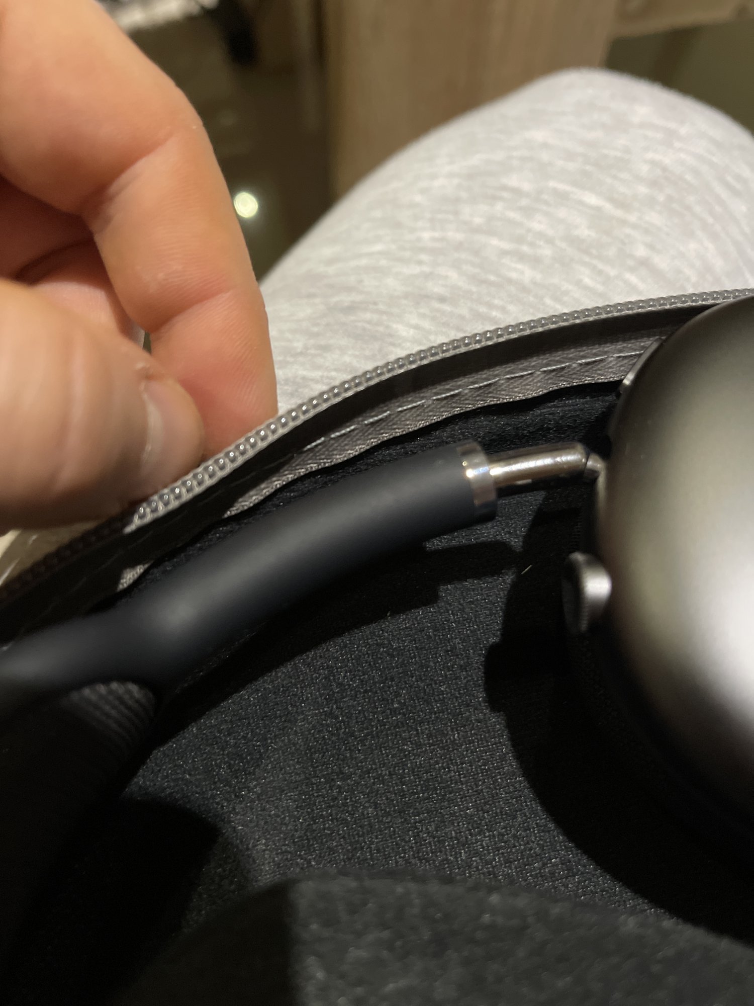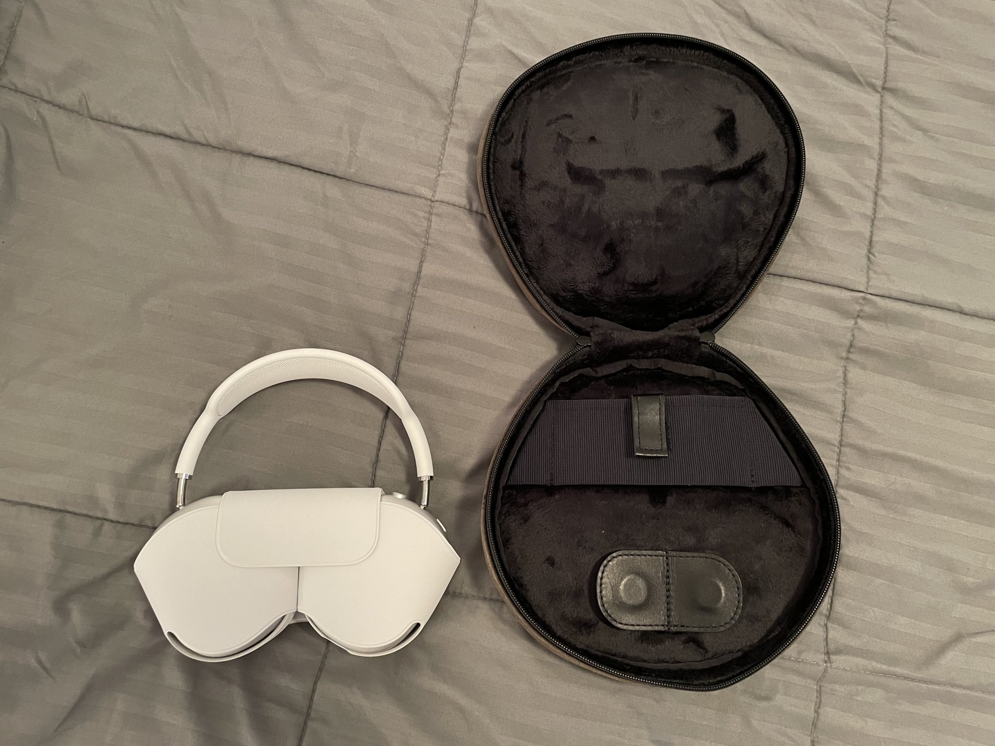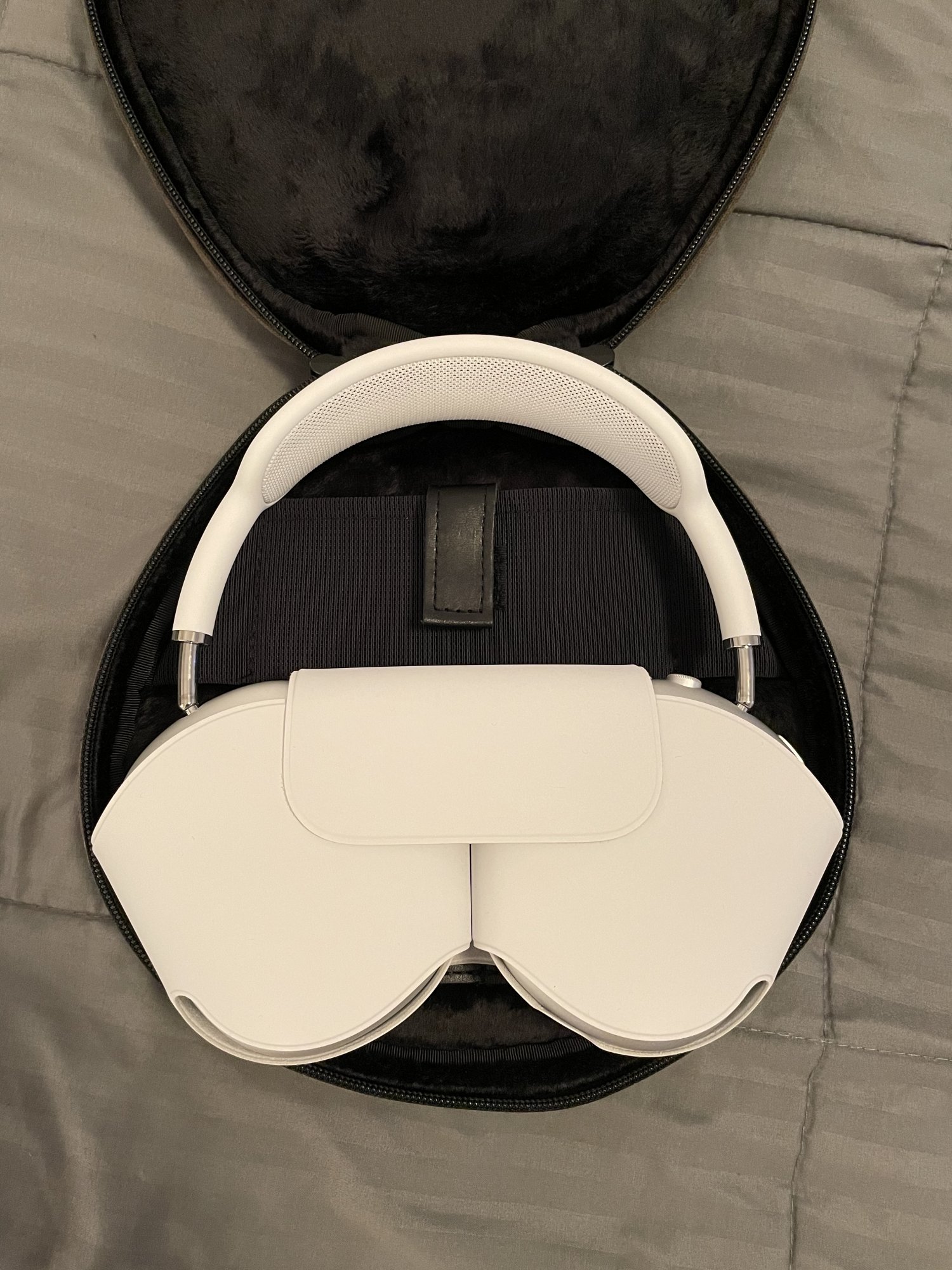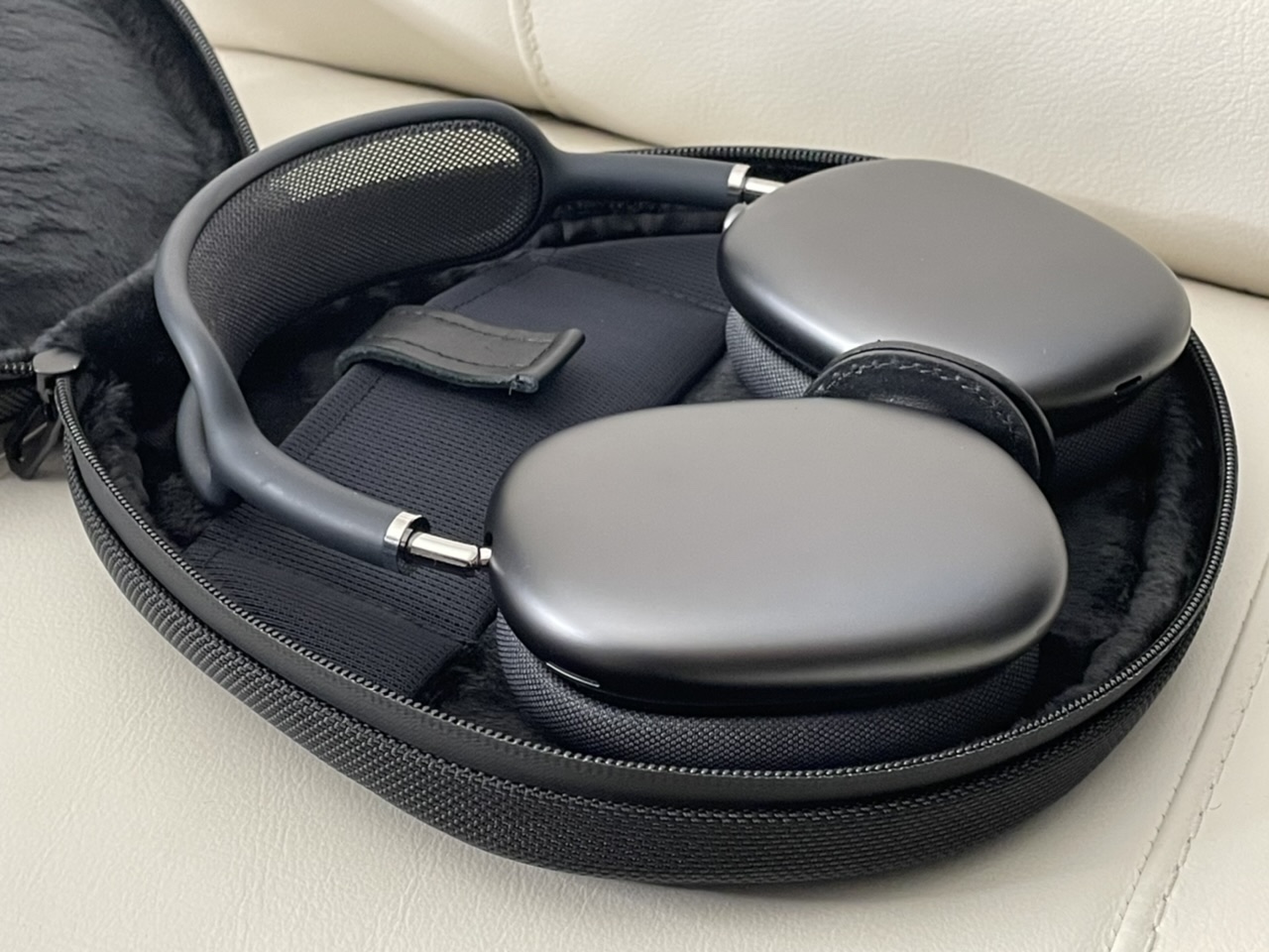 There‘s one case on Amazon that has a lip inside of the zipper to prevent contact, but it only accommodates the AirPods with telescoping arms pushed all the way in, which makes it a no go for me. This is the one https://www.amazon.com/co2crea-Carrying-Replacement-AirPods-Headphone/dp/B08R7641MM/ref=sr_1_1_sspa?dchild=1&keywords=Geekria+AirPods+max&qid=1610210575&sr=8-1-spons&spLa=ZW5jcnlwdGVkUXVhbGlmaWVyPUEyU1pZWVM5Q1dQSzRFJmVuY3J5cHRlZElkPUEwNzgxNzk1MTNDMjE3Q0QxME5JUSZlbmNyeXB0ZWRBZElkPUEwNjI0MTkyS1ZKNFdURzc5R05CJndpZGdldE5hbWU9c3BfYXRmJmFjdGlvbj1jbGlja1JlZGlyZWN0JmRvTm90TG9nQ2xpY2s9dHJ1ZQ&th=1