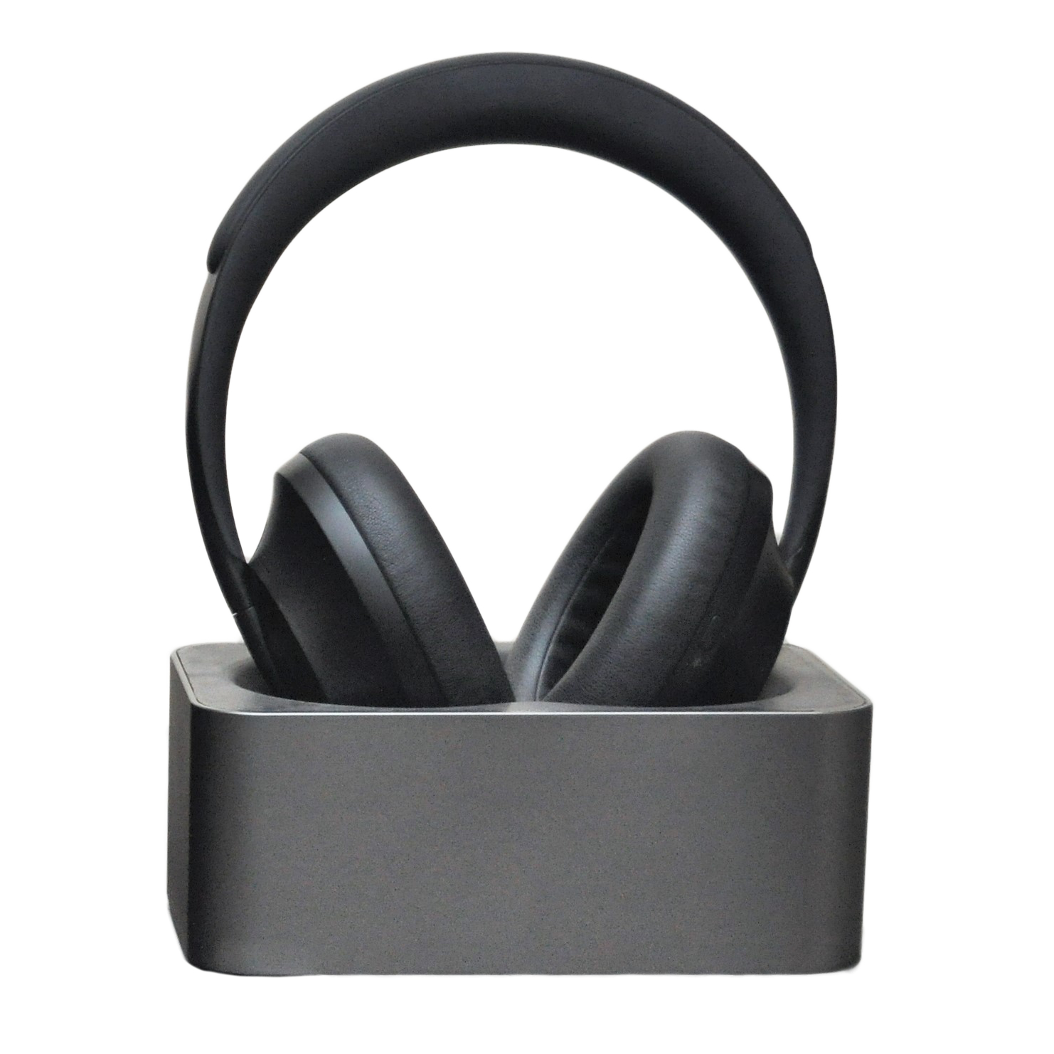 I want to see if there would be any issues having the AirPods Max rest on a desk headphone stand. Shown here is the AirPods Max resting on the Grovemade headphone stand.
