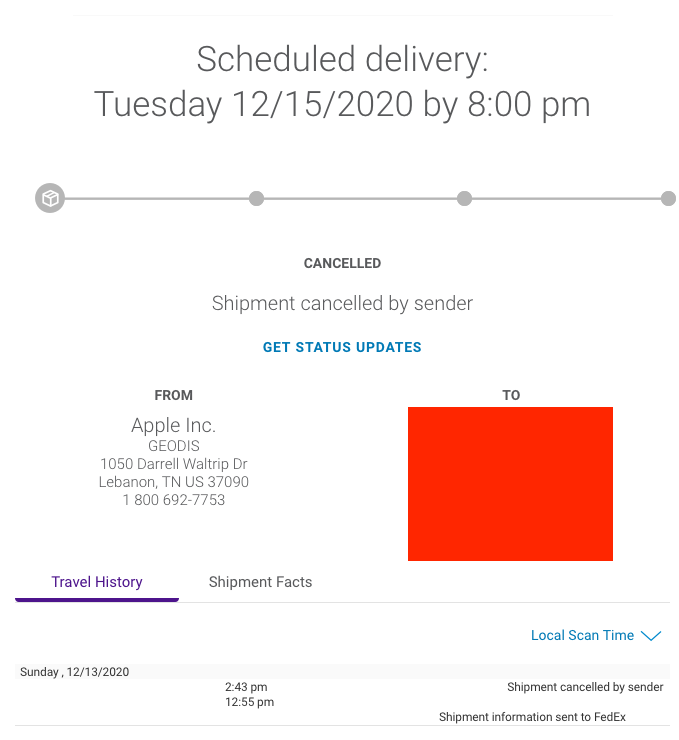I checked my FedEx account and it shows two cancelled shipments from Apple today. I ordered one pair early on announcement day. Apple still says arriving between 12/15 and 12/17.View attachment 1693481