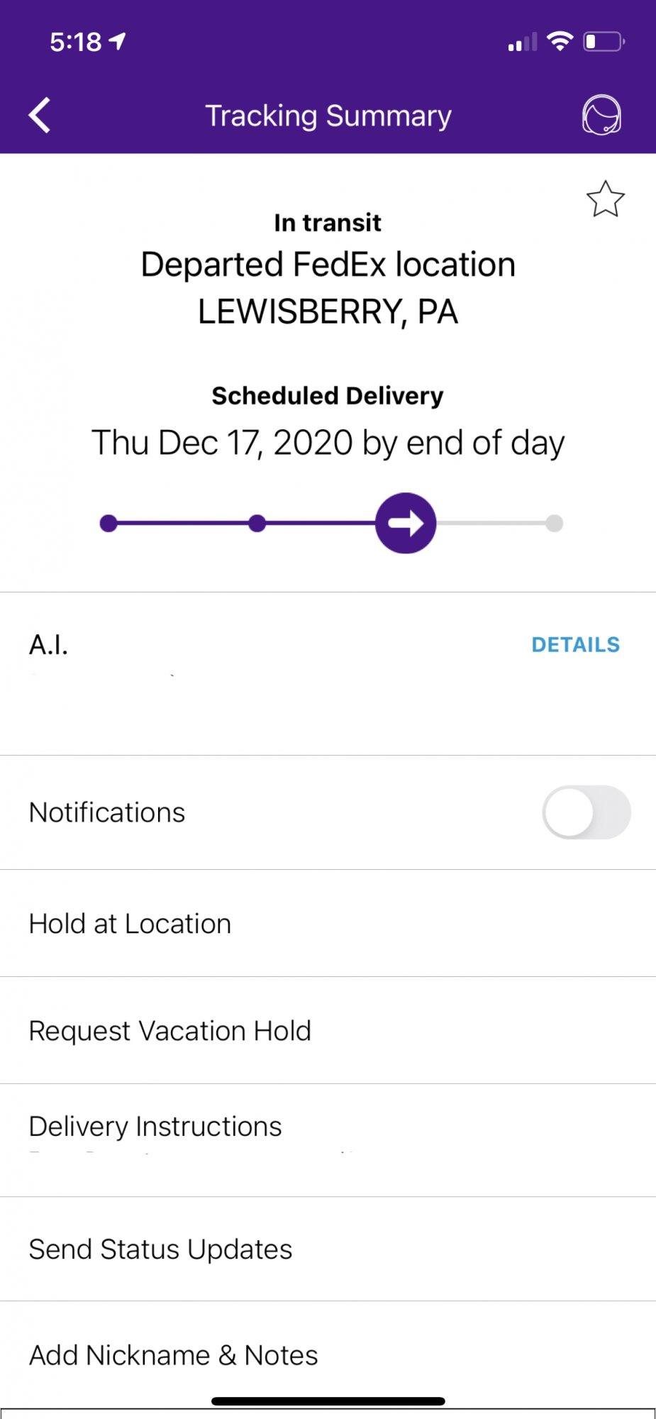 Shipped notification for an order in Canada at 10:05 PM. Says 17th delivery, though I guess it’s possible I get them tomorrow. Tracking takes me to FedEx without any info about the shipment. Have received everything else this year via UPS, so hopefully they’re okay.