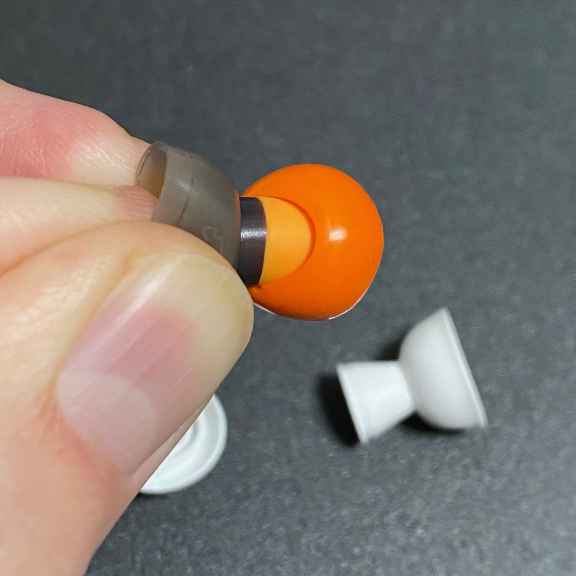 1. Begin by inverting both tips. The Symbio memory foam seems to be sticky, but it actually isn't sticky - just tacky. So the tip inverts pretty easily, exposing the memory foam core.