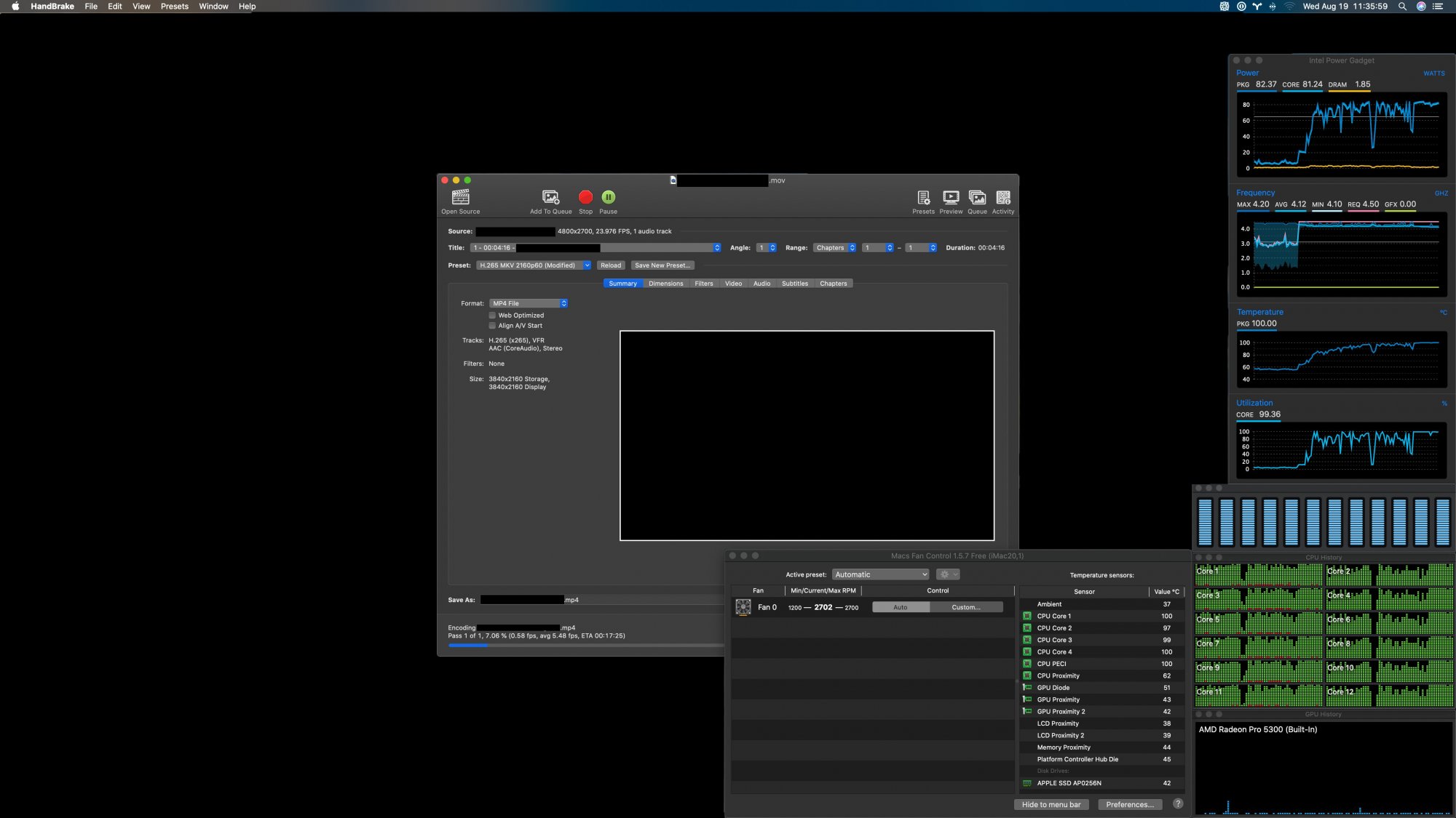 I know the i9-10900K has been shown to draw over 300W with all cores at ~5GHz and needs a very capable liquid cooling system to operate at that speed. As I recall, Anandtech also needed to use very capable liquid cooling on the 9900K because it had to be well into the triple-digits on wattage.