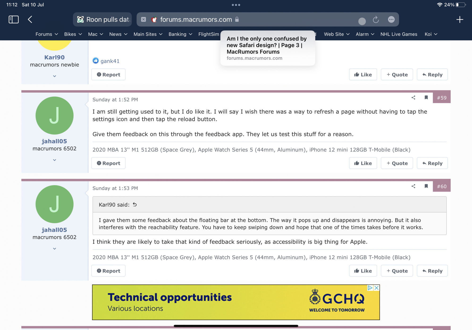 Sorry I keep going off on the location of the Bar, I’m REALLY irked by how disruptive it is. And staying on iOS 14 won’t be an option for me. It’s just creating so many problems for me.