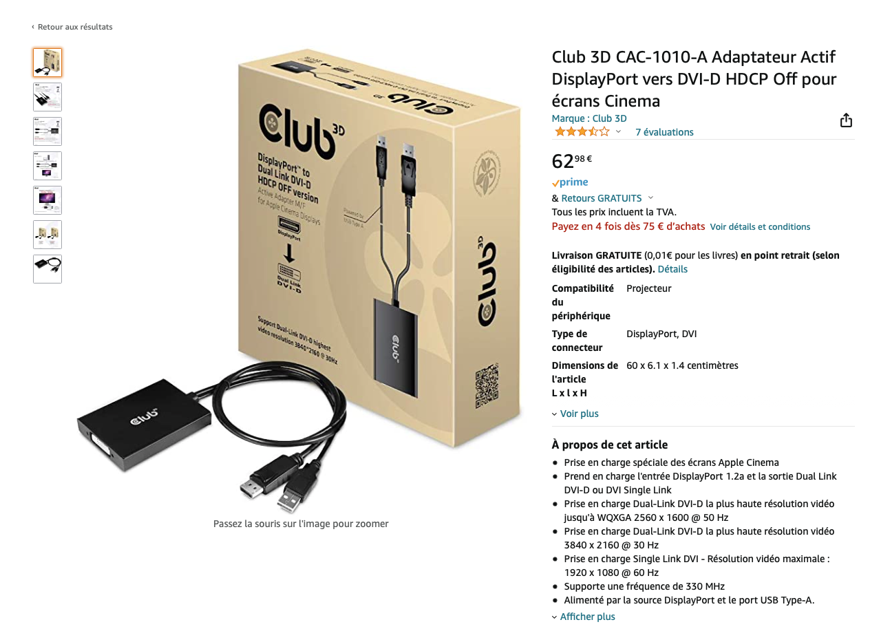 My screen is an Apple Cinema Display 30" and I'm using the Apple Mini-DisplayPort to DVI-D adaptor.