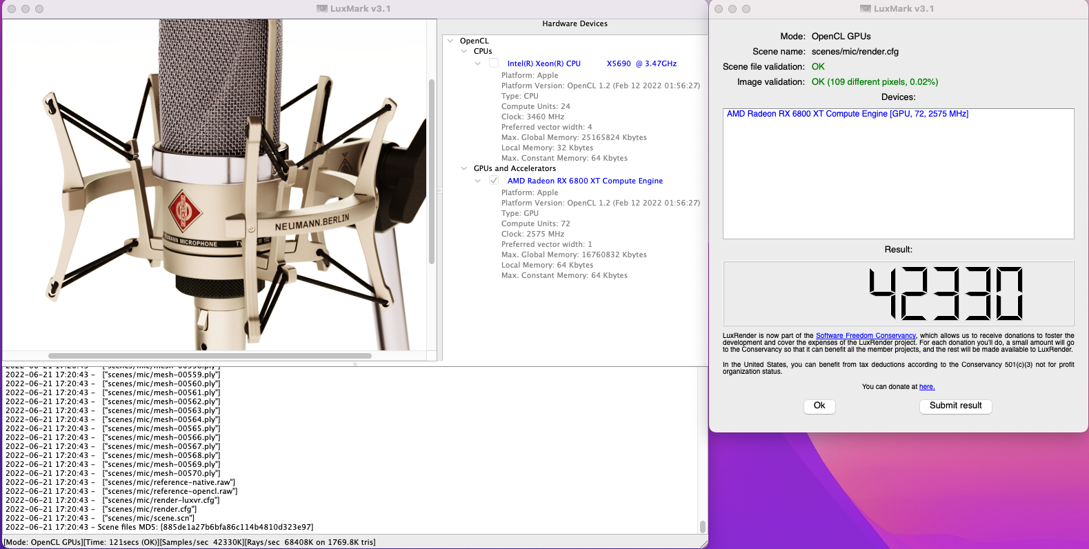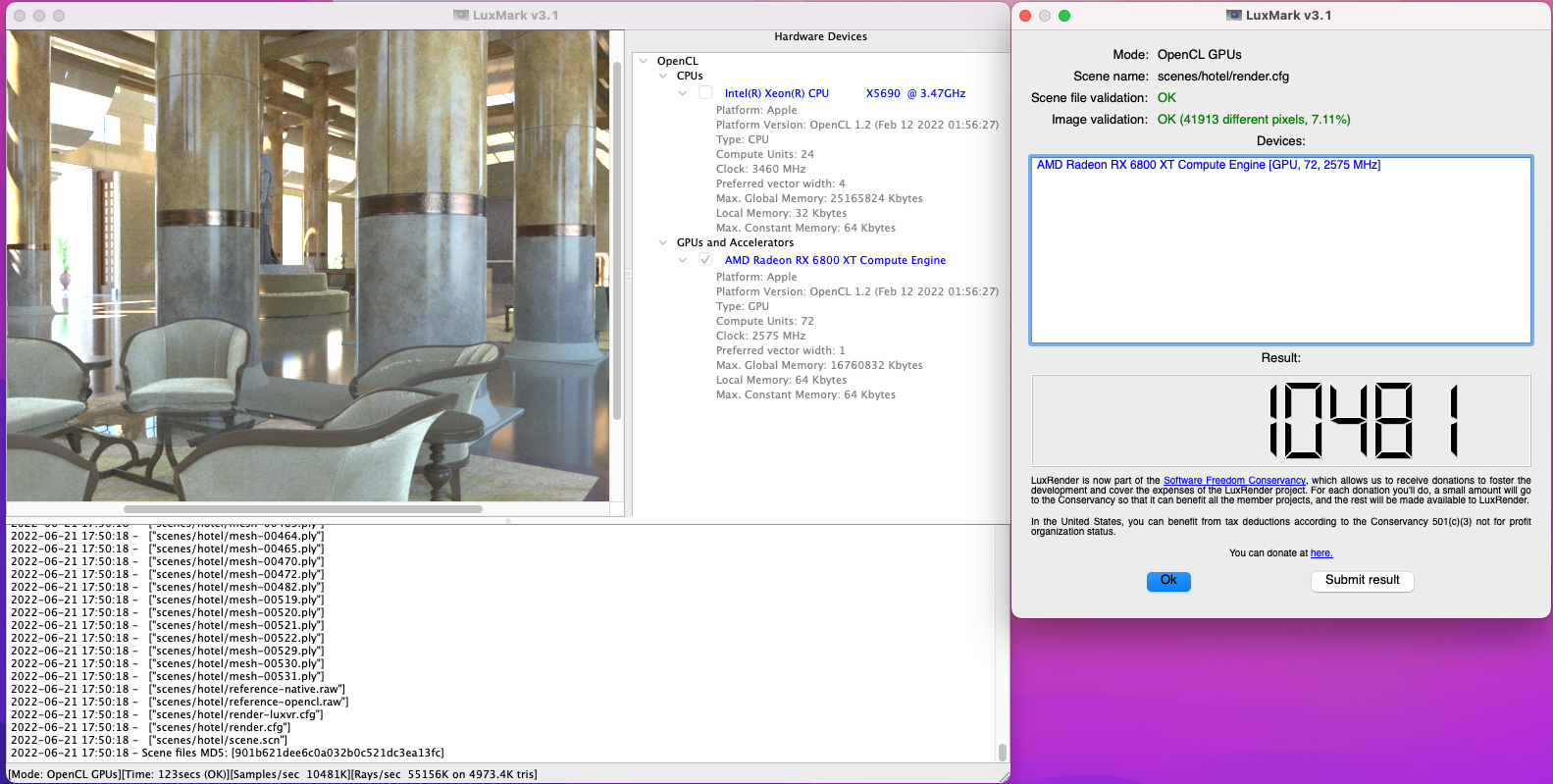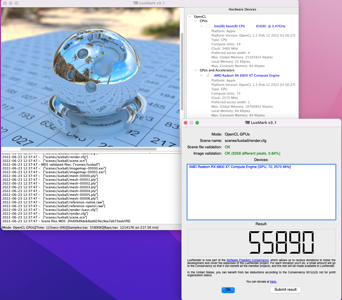 My other two Luxmark results in Mac OS.