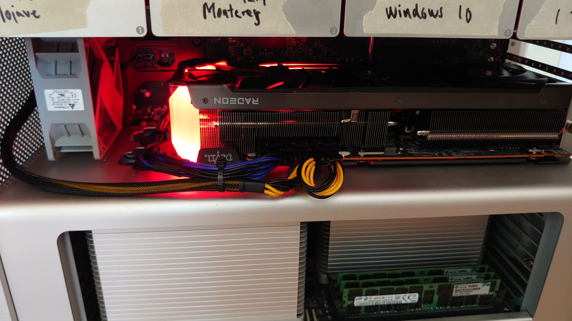 hi professionals , i made flash 6900xt tuf gaming in mac pro 5.1 .dual x5690 ,64 gb ram 10600 ,2 tb nvme evo plus, 3x 2tb hdd,pixlasmod, 34 inch mi display 3440x1440 144hz, mac os Monterey 12.4, windows 10 , opencore patcher latest. i wanna be gaming at windows with this . but i have issue with that. all benchmark is perfect but fps in all game very poor than rx580.