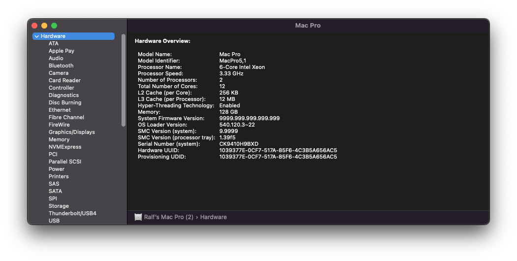For example, when I use a Cinema Display, the MacPro does not display the System Information