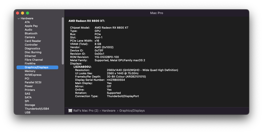 As mentioned above, first you have to differentiate the generations. Even the acrylic 23" display was named "Cinema Display". And, as stated in the earlier post, i can run a setup of two of the 27" LED models of the last generation from a 6600 xt without any problems. They boot up fine in their native resolution. 3D-bencmarks run without any issues. And even video hardware accelleration seems to be supported out of the box. With Geekbench 6 i get a Metal-score of over 97.000! So no problems at all so far.