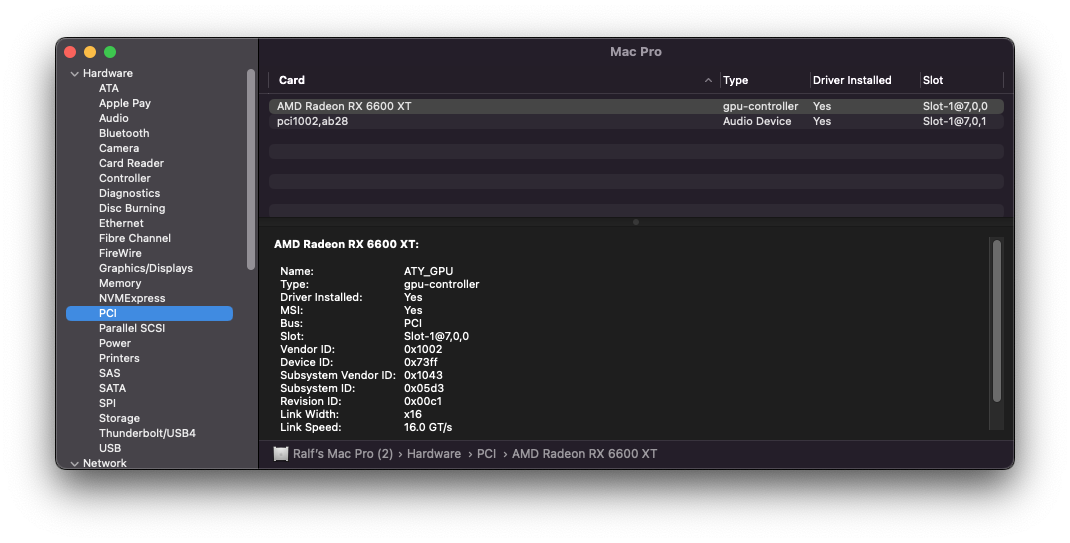 My MacPro5,1 now runs on Ventura in combination with a RX Nitro+ 580 8GB (or a Pulse). I did not test it in detail, but as far I can see the system runs stable. The installation went smoothly with OCLP 0.6.2 (test release).When debugging and tracking an issue that you don't know where it is, always start from the simplest configuration.