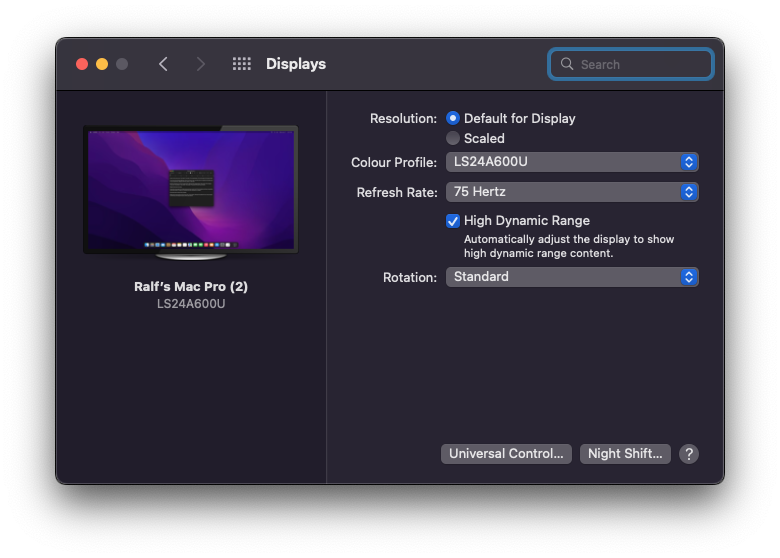 So the Cinema Display you are talking about seems to be the Aluminium-generation. I have two of them to test: A 20", which also works just fine in native resolution with one of those simple passive adapters which only work up to 1.920 x 1080 (Full HD). So problems are limited to the 30" model, which has allways been bit of a hassle with cards that don't have a Dual-Link-DVI port. And, as also mentioned above, at least in my case, XFX Swift RX 6600 xt, 5,1 running 12.6.3 with unpatched OpenCore, it shows a full res GOP bootscreen (Enable GOP injected in the card's ROM) but looses the signal as soon as the machine boots into the OS. But, when fully booted, i can get the signal back by just unplugging and replugging the display/adapter from the card's DP. After that it works just fine.