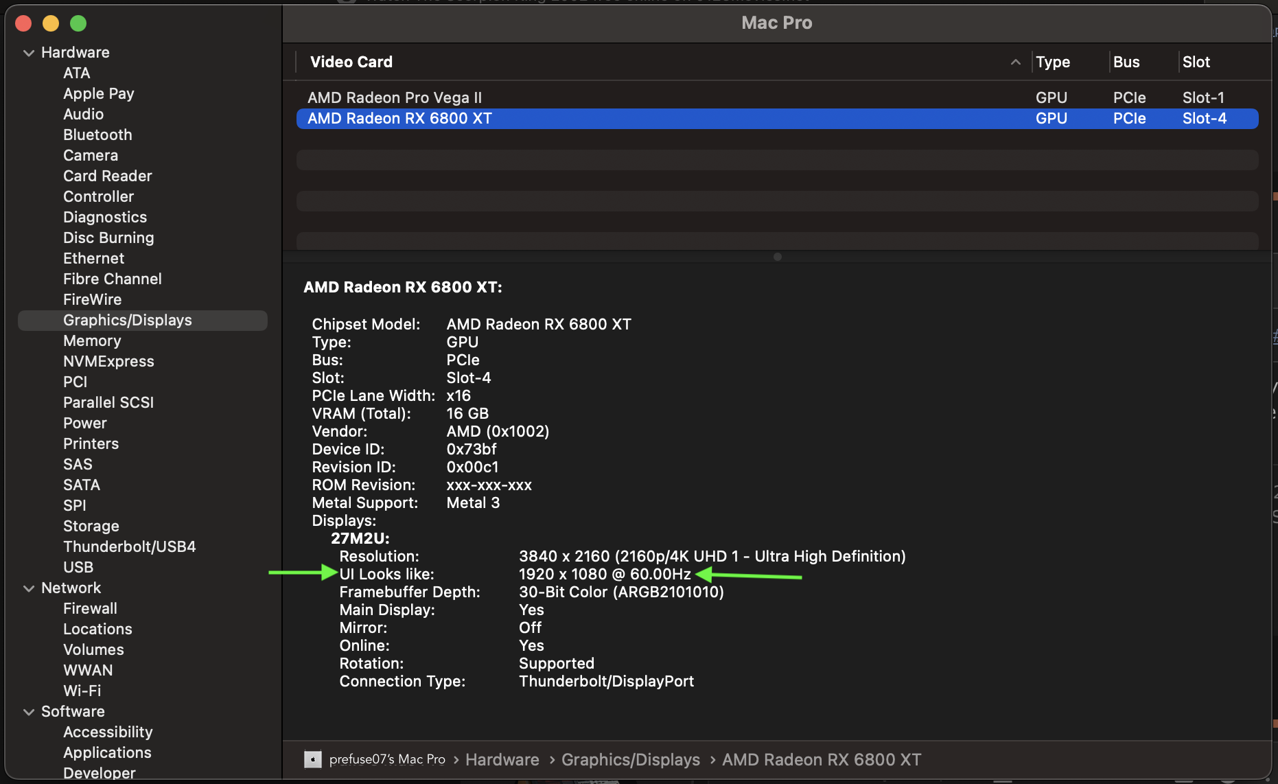 macOS doesn't show output resolution and output color depth in System Information.app. It only shows framebuffer resolution and framebuffer color depth.Not sure how to check this in Mac OS, the monitor just says 4K at 120, in the in the monitors OSD, it does not show it when in the service menu either I can select RGB, I just tour the whole thing down to put it and my speakers on a new stand, will look when it’s back up.