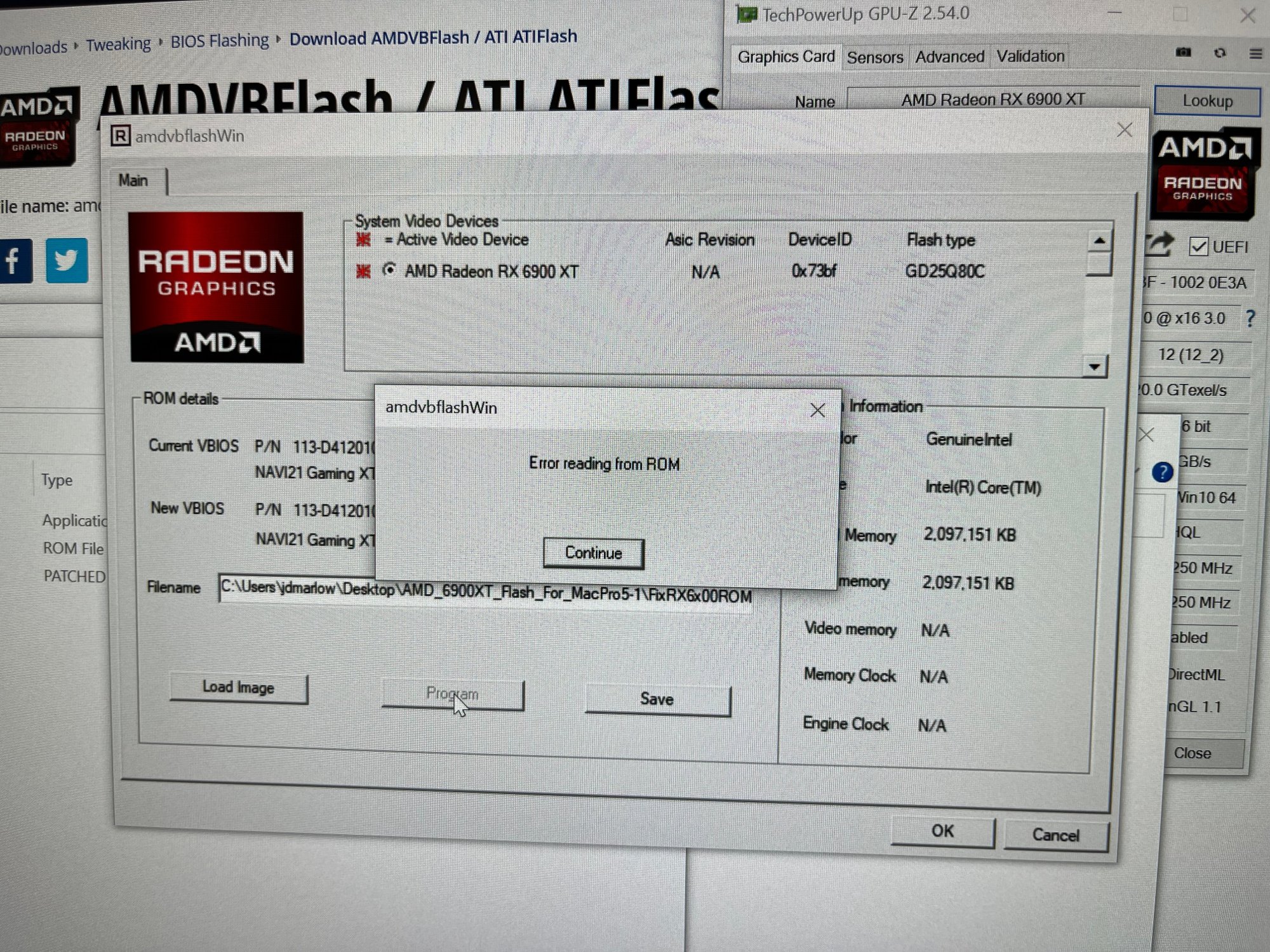 The computer may looks like hang for few minutes. Did you wait for the process to complete?I finally did that and it worked. Unfortunately AMD VB Flash froze mid-way during the flashing process. I think the card still works but I can't seem to get this thing finished.