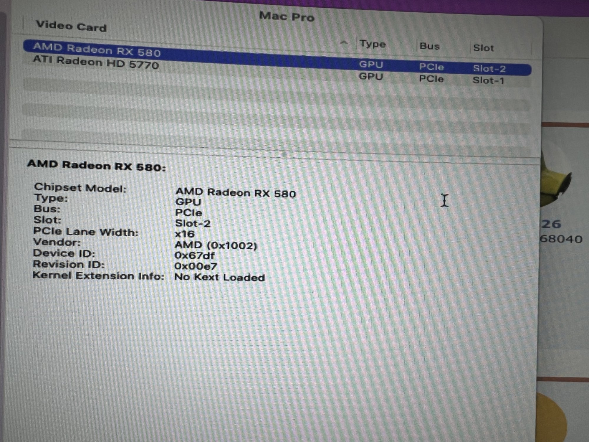 On the systems report, you see that the AMD is not being picked up and has the kernel extension “No Kext Loaded”. NOTE: I had this report on both the nitro and XFX cards.
