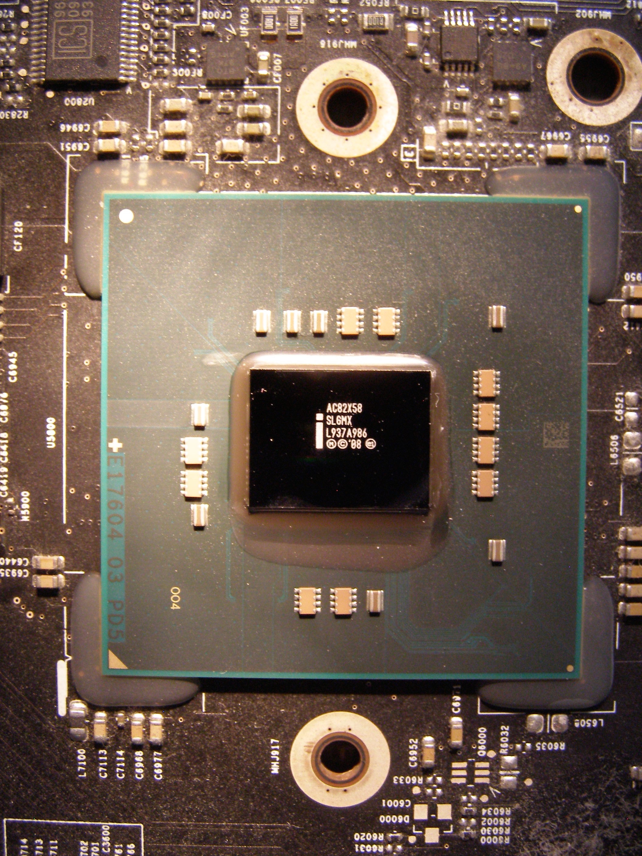 And here is an actual picture of the AC5520 IOH "Quasi Northbridge" die from a Mac Pro 4,1 (2009 factory) dual CPU Tray . Here is something interesting : a 5520 chip .
