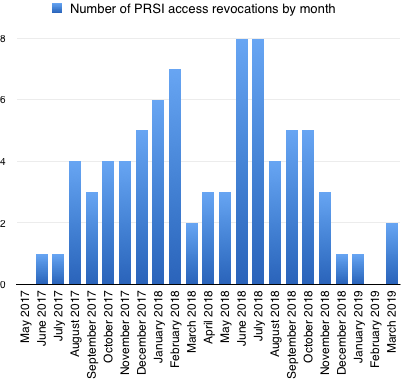 - Moderator documentation of the violations that lead to removal of PRSI access for all members since the new policy was enacted