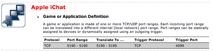 Here's what my router had as its presets for iChat - and which allow me to audio and video chat
