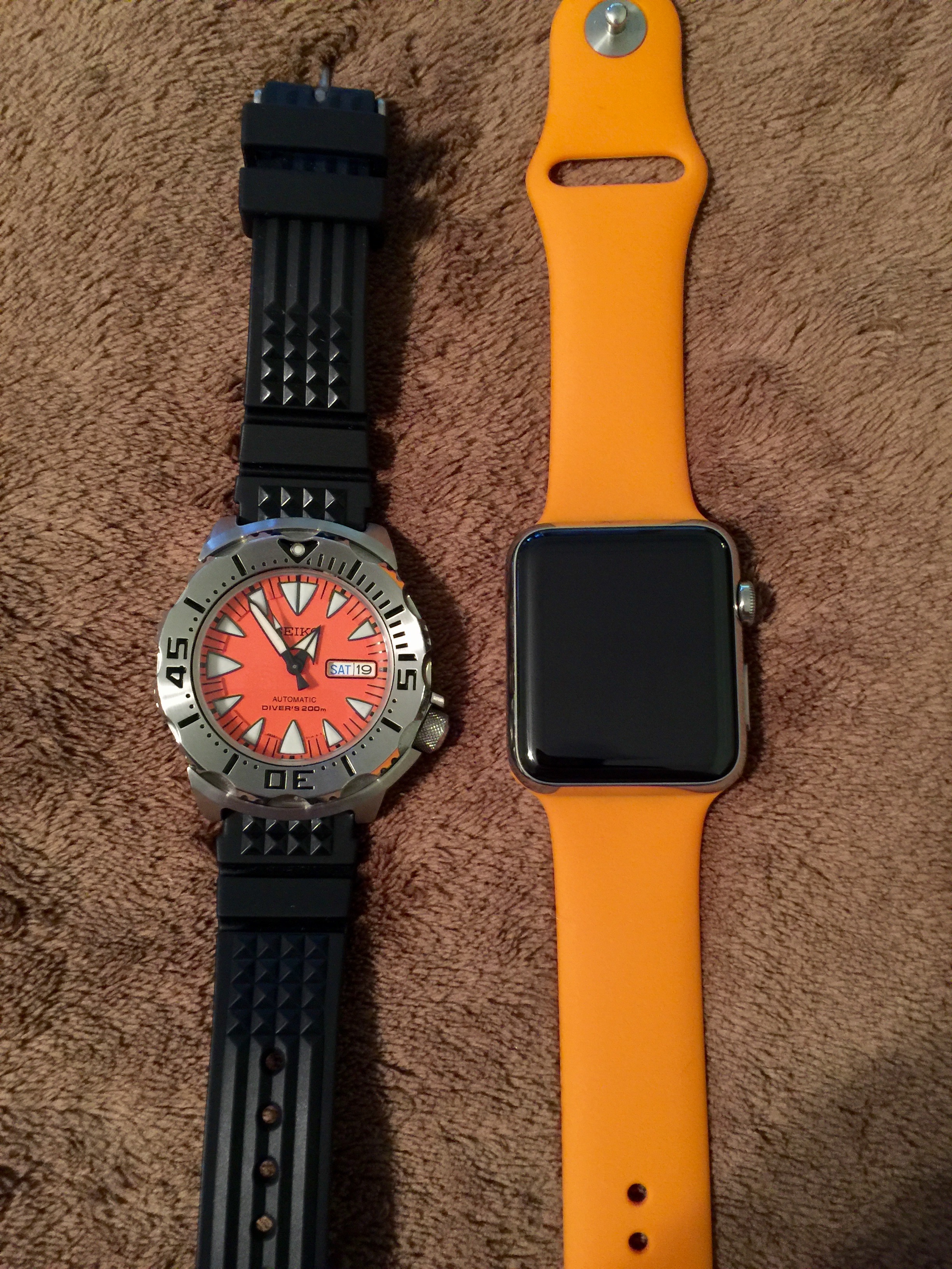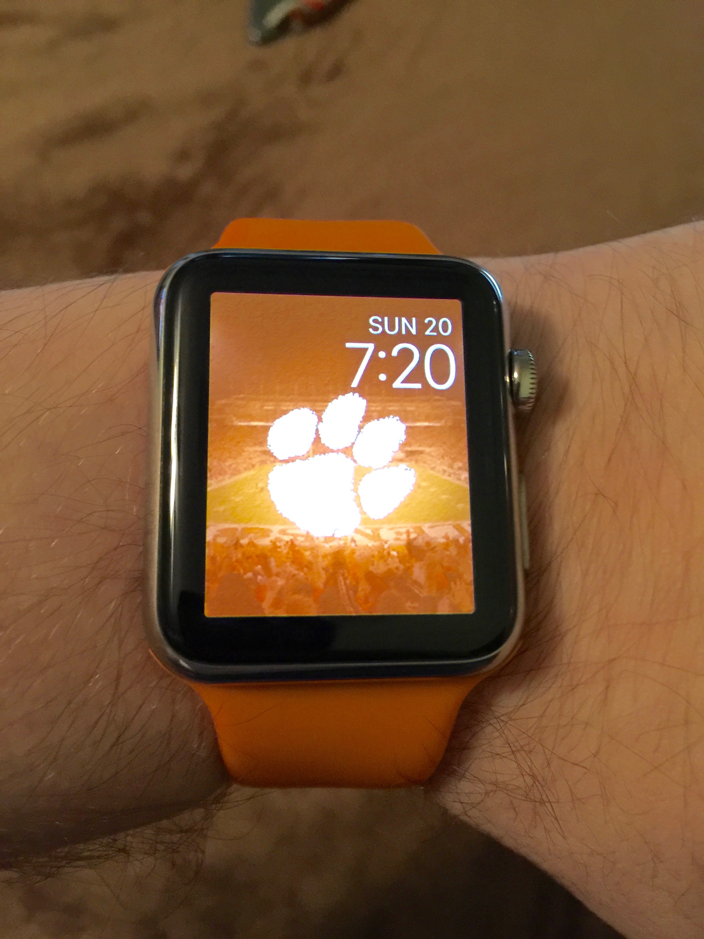 Finally I have an orange sports band! The Moko isn't quite as nice as the Apple sports but it's not far off. Pictures of my new gameday watch beside the Orange Monster
