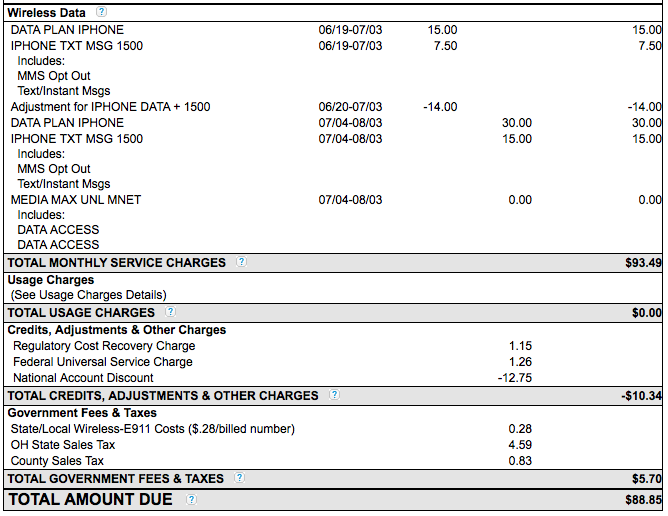 They show billing from the 18th June, as we all know we didn't receive the phones till the 19th June, 1 day difference but still, if they have done this to every new AT&T customer, this soon adds up.
